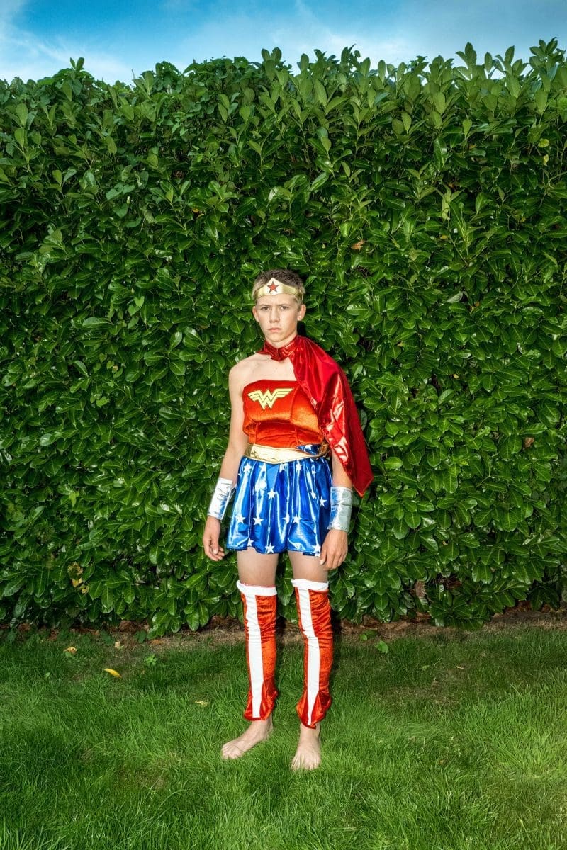 This is George, my youngest son. It’s one of the winning images for Portrait of Britain. George chose this outfit for his personal study “How Social Expectations of Masculine Attractiveness have Restricted Male Expression Through Fashion” He says “I think the way men are expected to be in society is detrimental. The expectation of ‘manliness’ – wanting all the ‘manly’ parts of the typical masculine attitude without any of the vulnerabilities. Limited emotional expression but still needing mature understanding of mental state. Its no wonder men struggle to develop a feminine side”