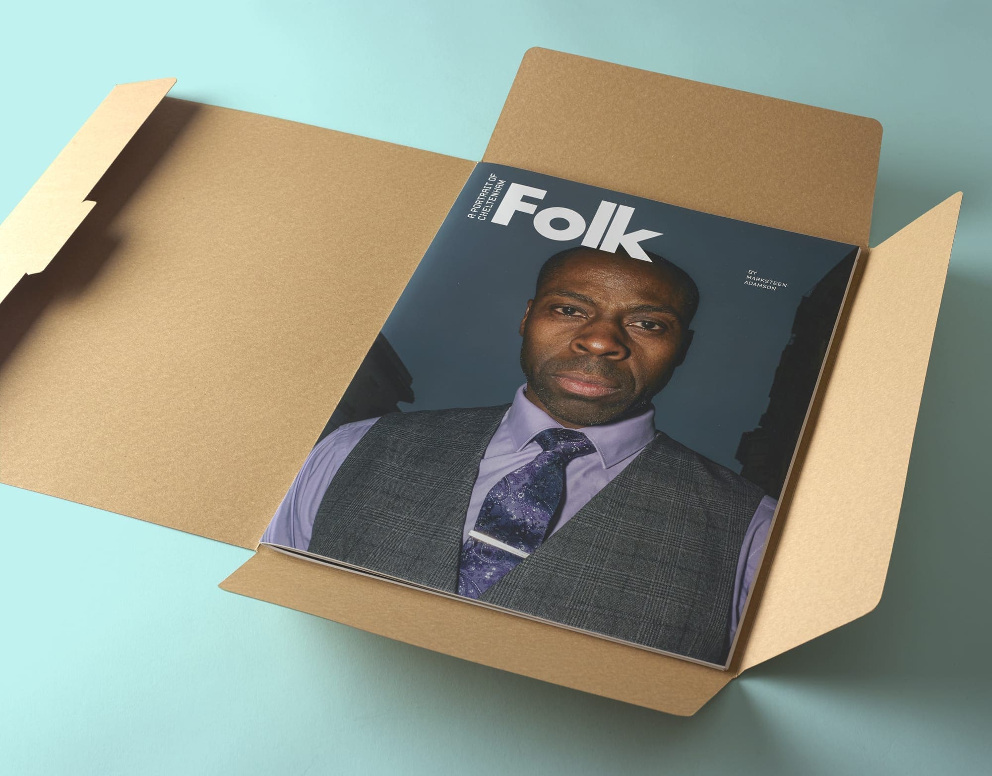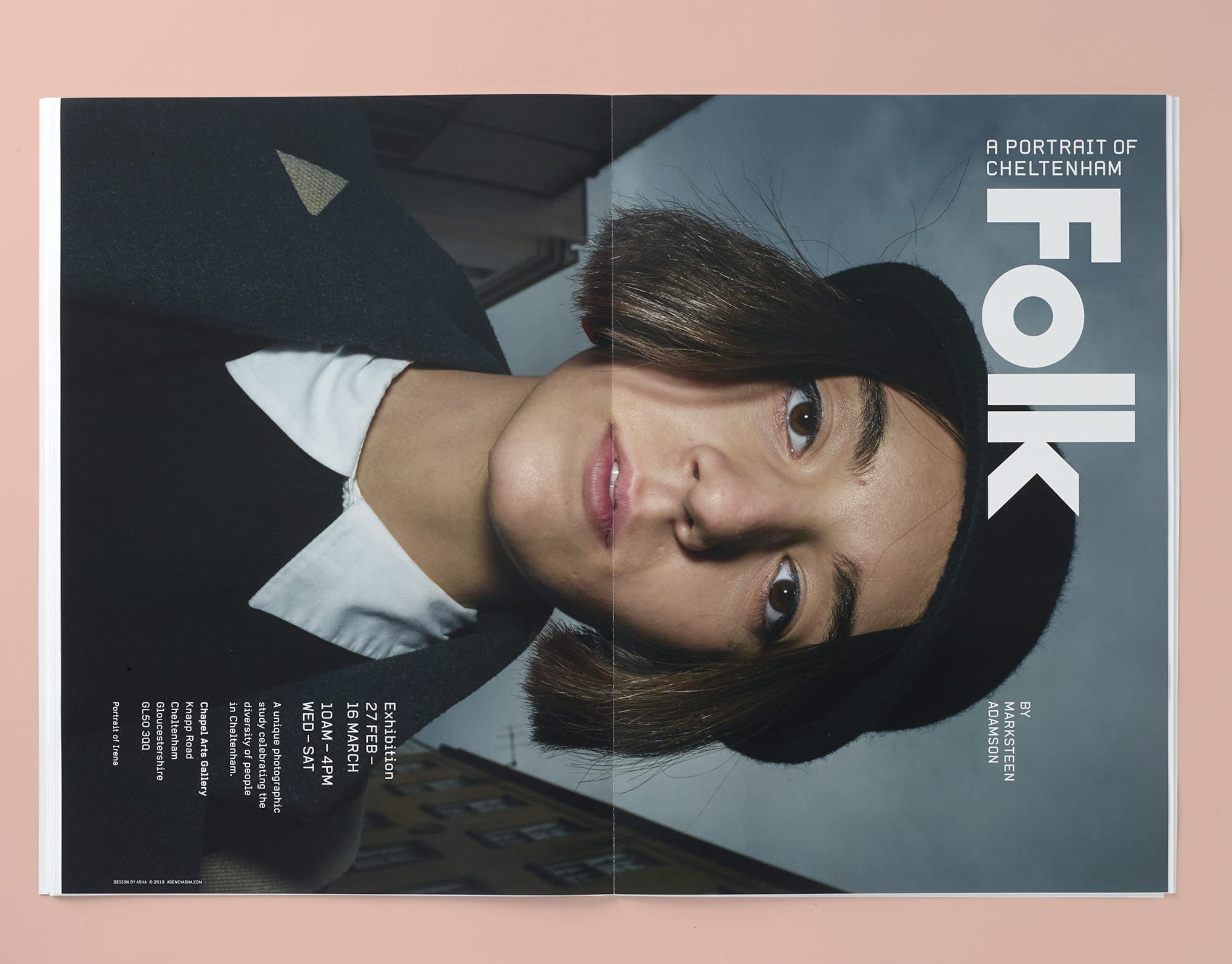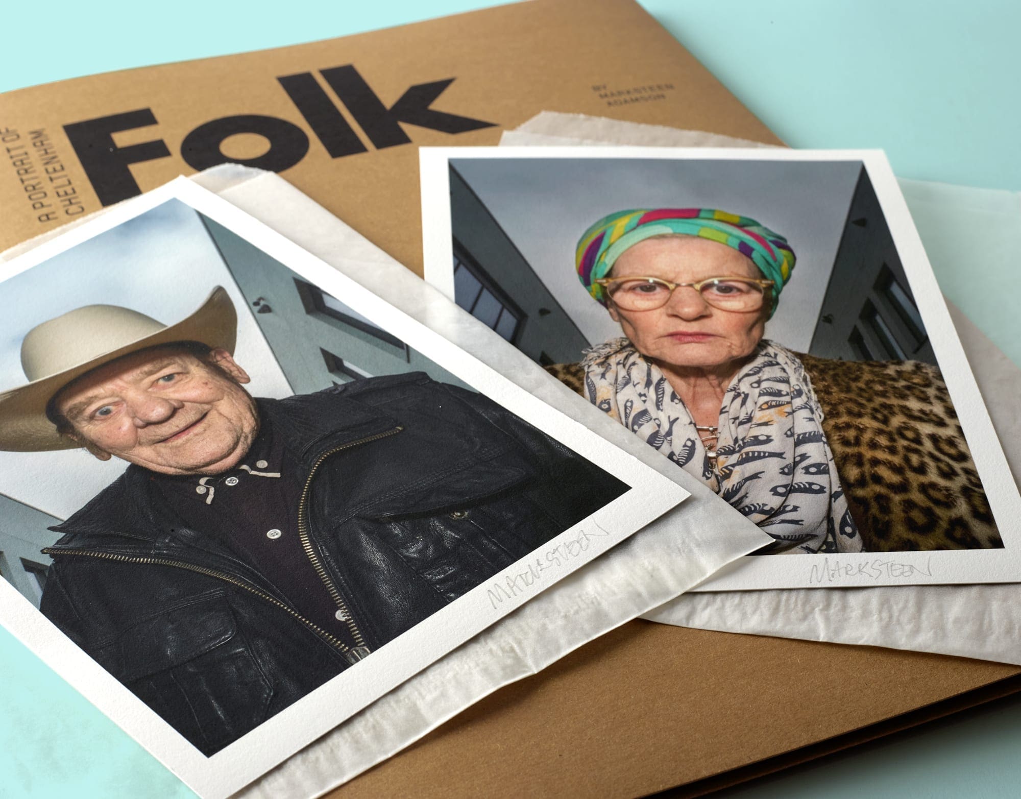 The Cheltenham Folk Catalogue features all 48 large images that were exhibited in the exhibition at Chapel Arts gallery and with the addition of two pages of multiple out takes. The size is A3 and the inside spread opens up as an A2 poster featuring the portrait of Irena.
