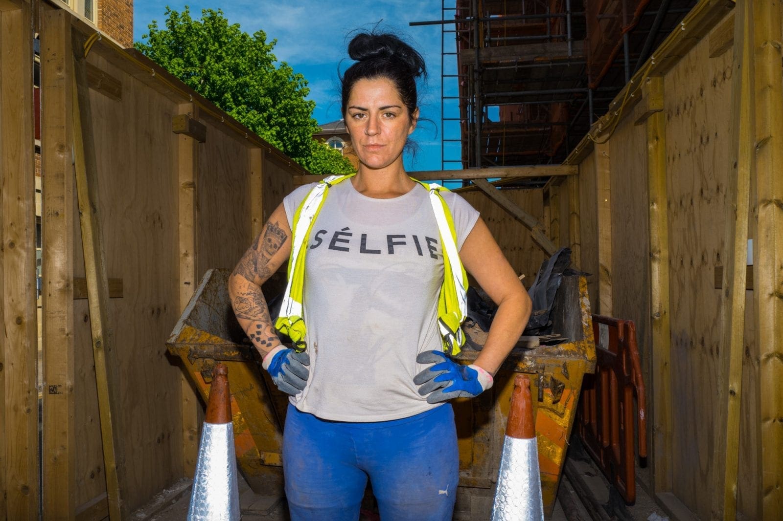 Lea is a hard working mum working in the building trade in Gloucestershire. Former ground worker and currently a sub contractor for Smiths construction. I took this shot of her whilst she was working on a building site in Cheltenham and together we collaborated on the poem that represents one aspect of her life.