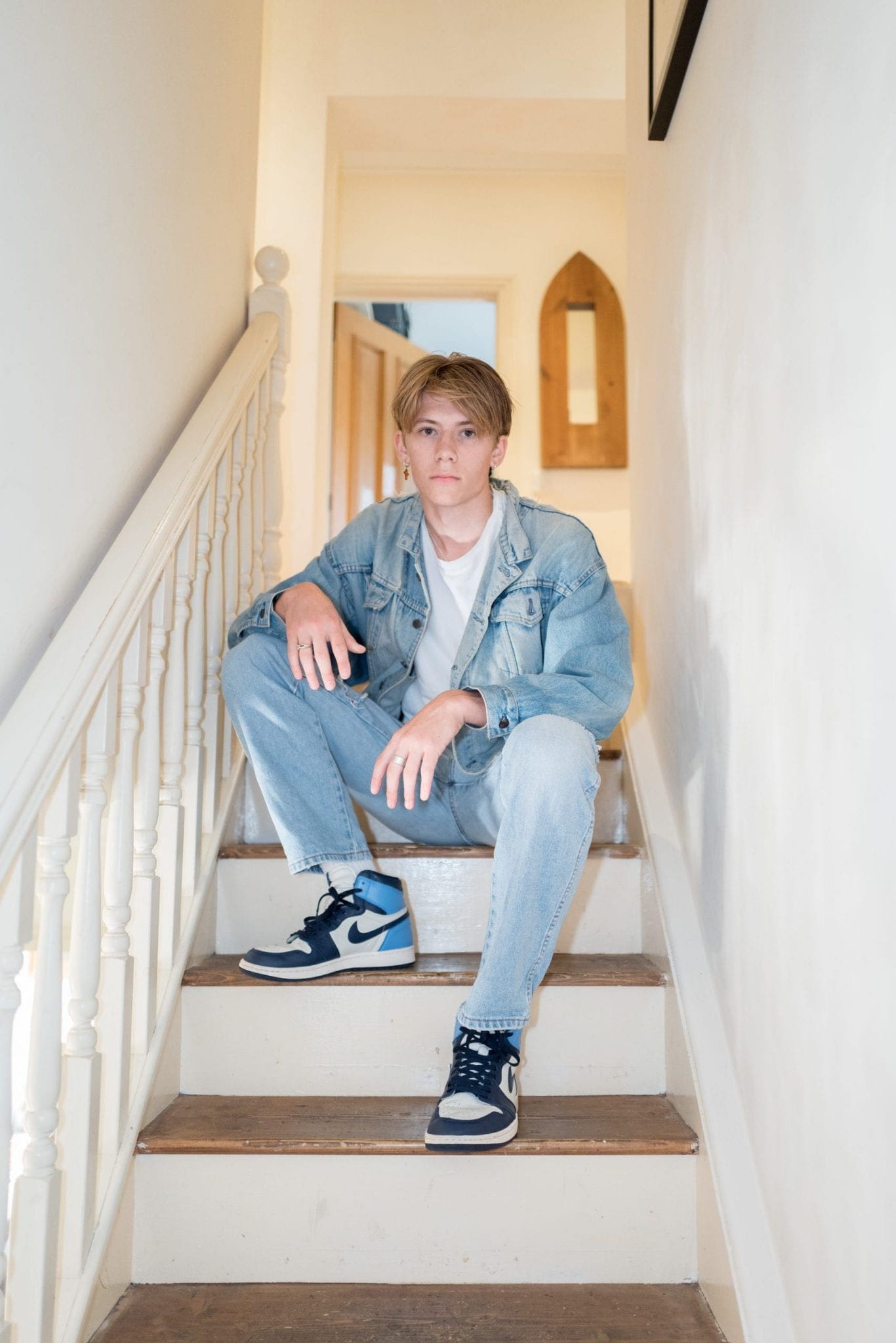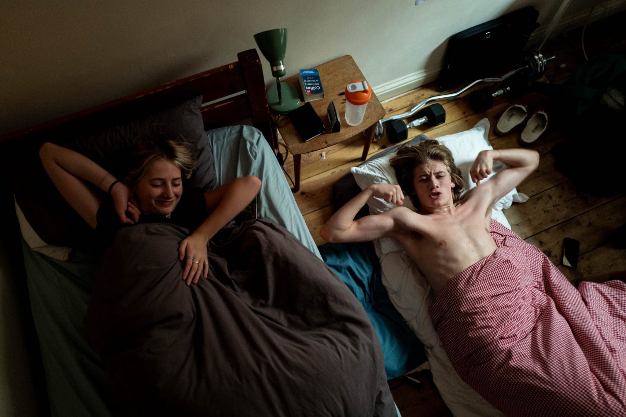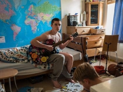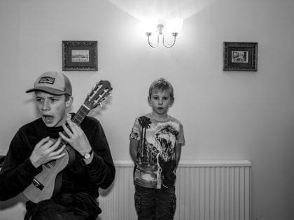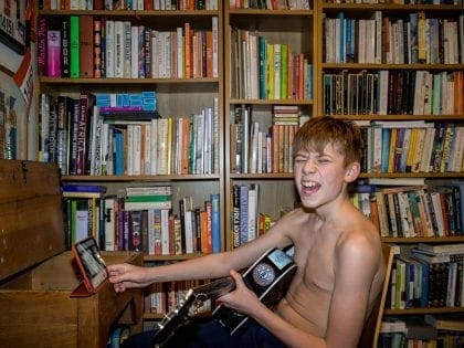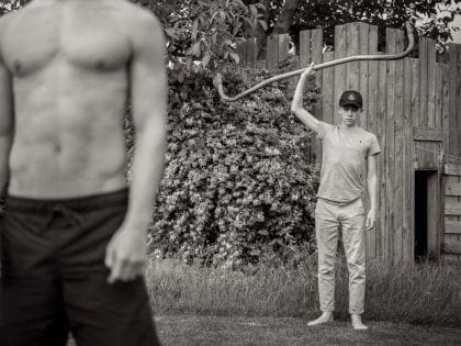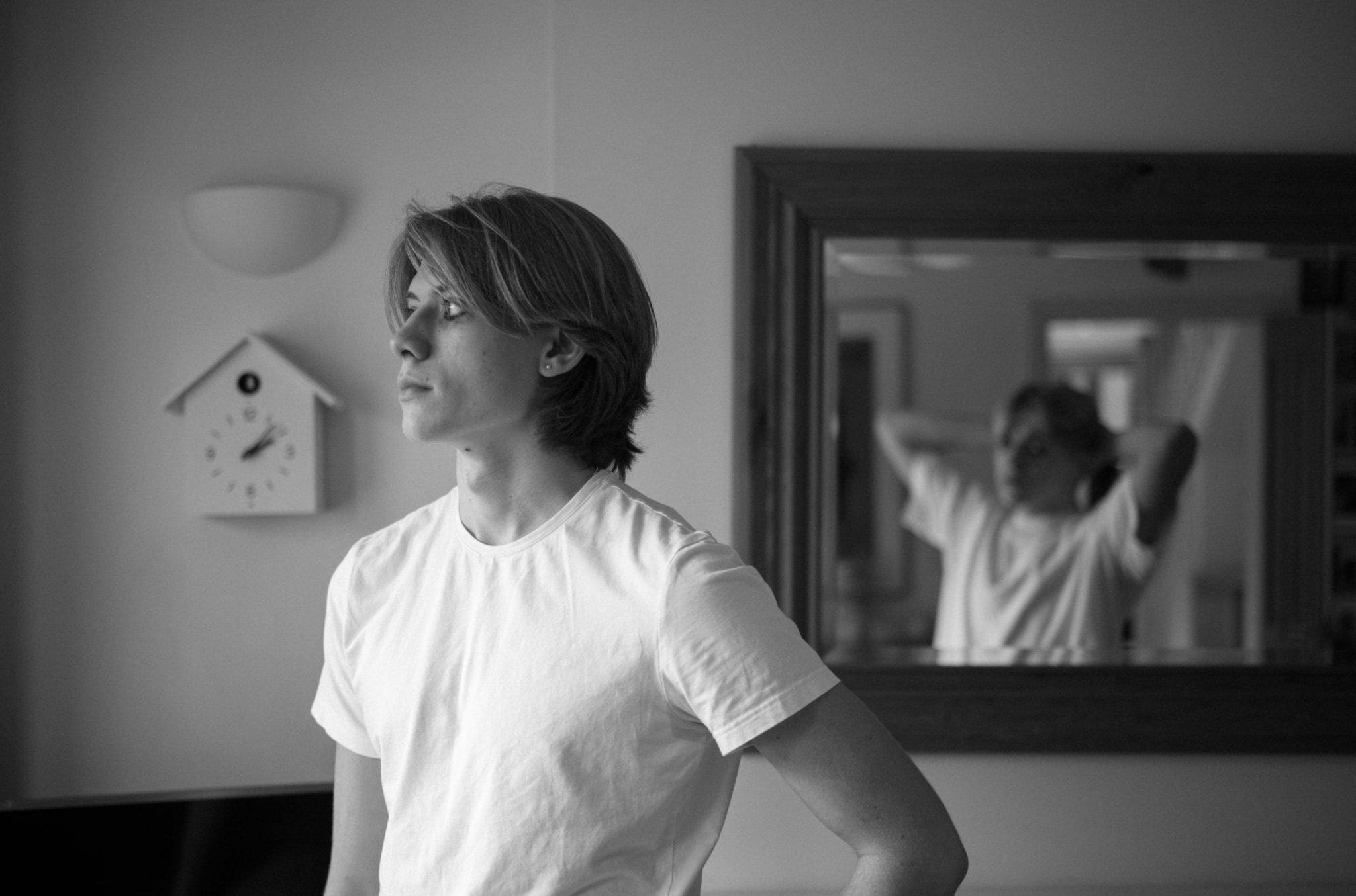 This study of that change-over period- from boy to man, mainly features Jack and George who are the youngest two. This is partly due to the fact that I only really started taking more photos recently. I now wish I could go back in time and capture some of the very unusual and special moments with Jemima and Nathan who are now adults. But I also know that they feel relieved at having escaped the intence scrutiny of my lens in their darkest hours. Surprisingly, George on the other hand has been more than willing to be photographed on most occasions and for this reason alone, he is un-fairly represented as the lead character. All four of my children are stars in their own right and I’m equally proud of them, especially for letting me intrude and document their sensitive and self-conscious lives at a time when most teenagers wouldn’t.