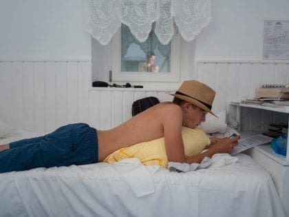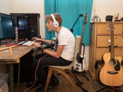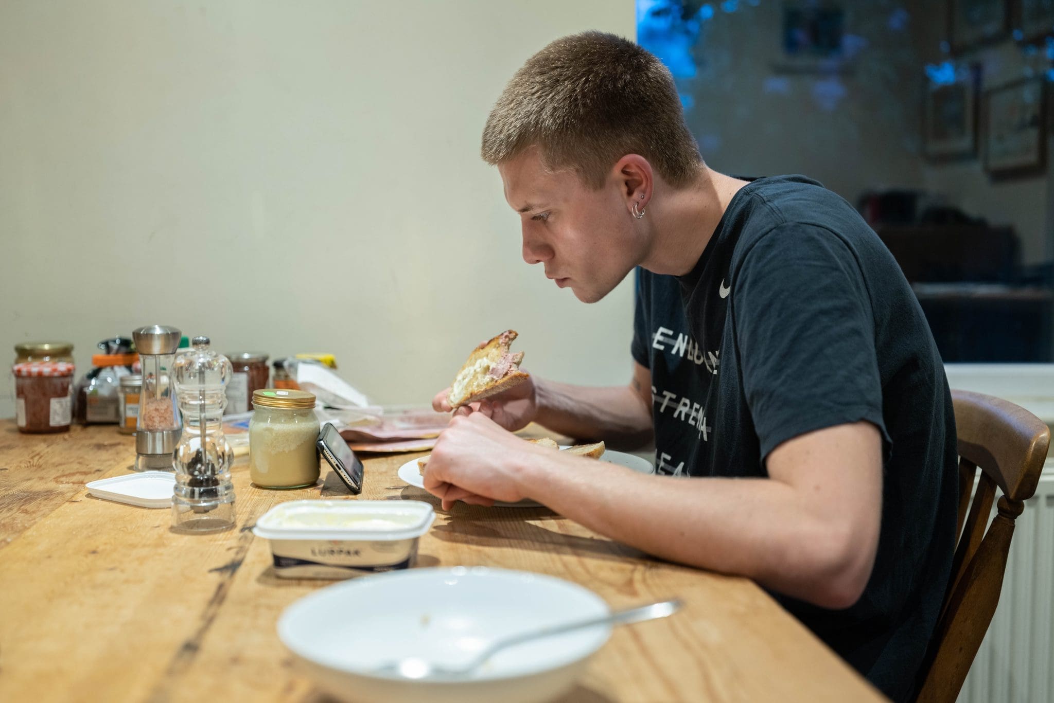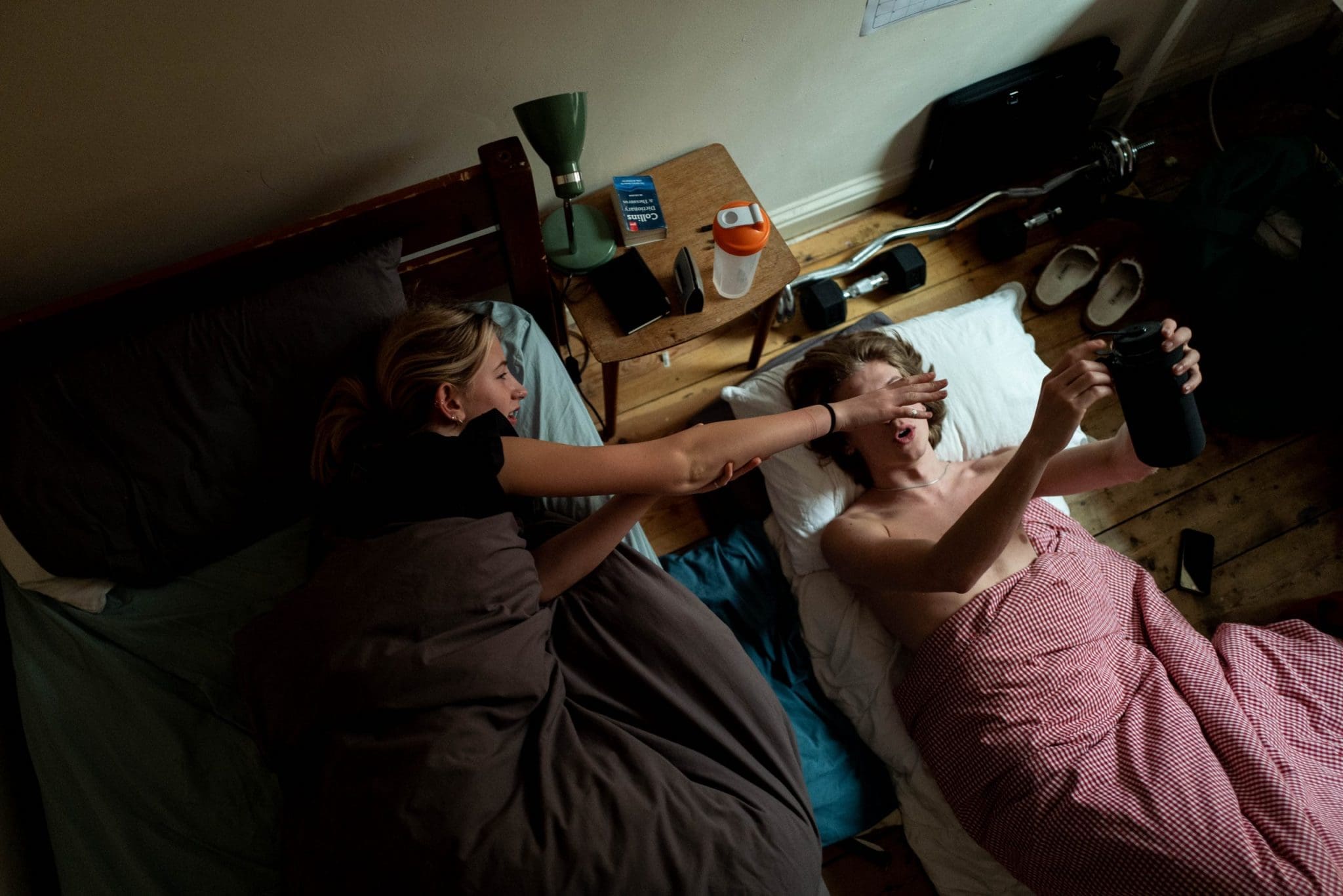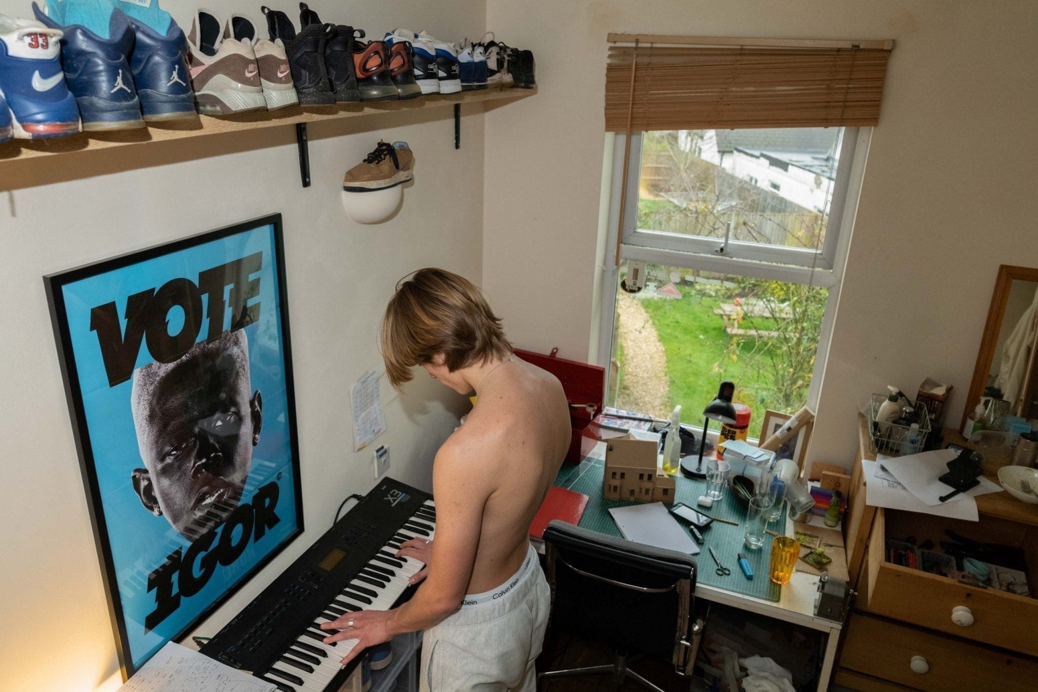 This study of that change-over period- from boy to man, mainly features Jack and George who are the youngest two. This is partly due to the fact that I only really started taking more photos recently. I now wish I could go back in time and capture some of the very unusual and special moments with Jemima and Nathan who are now adults. But I also know that they feel relieved at having escaped the intence scrutiny of my lens in their darkest hours. Surprisingly, George on the other hand has been more than willing to be photographed on most occasions and for this reason alone, he is un-fairly represented as the lead character. All four of my children are stars in their own right and I’m equally proud of them, especially for letting me intrude and document their sensitive and self-conscious lives at a time when most teenagers wouldn’t.
