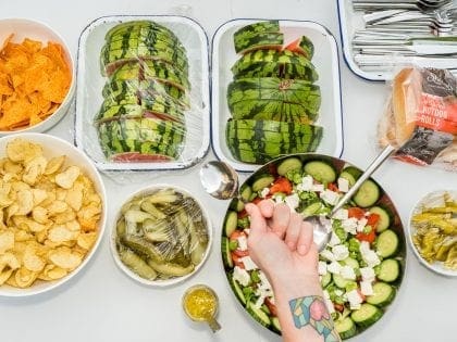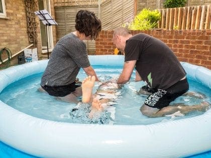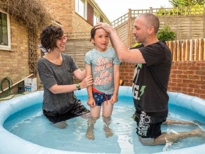 Friends and family witnessed the paddling-pool-baptism in the back garden, which was followed by a delicious summer BBQ buffet.